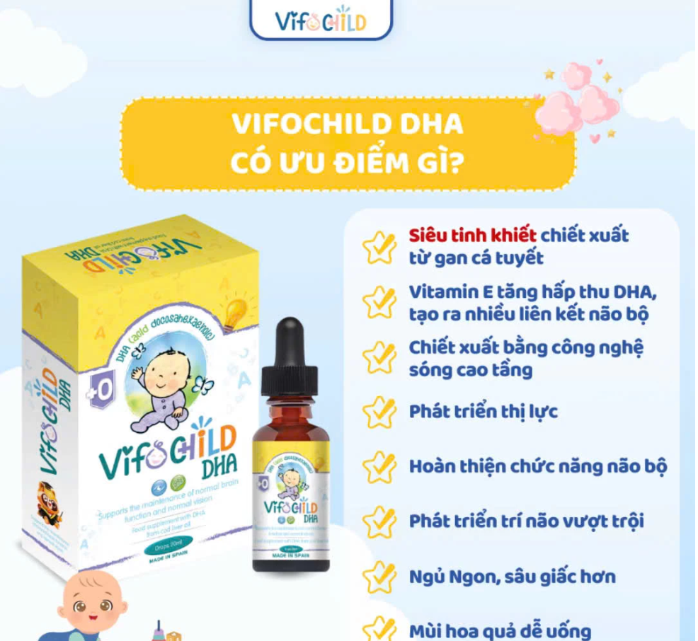 - Kết hợp với vitamin E tăng khả năng hấp thu, giảm tỉ lệ bị oxi hoá và tạo ra nhiều liên kết thần kinh hơn so với DHA thông thường