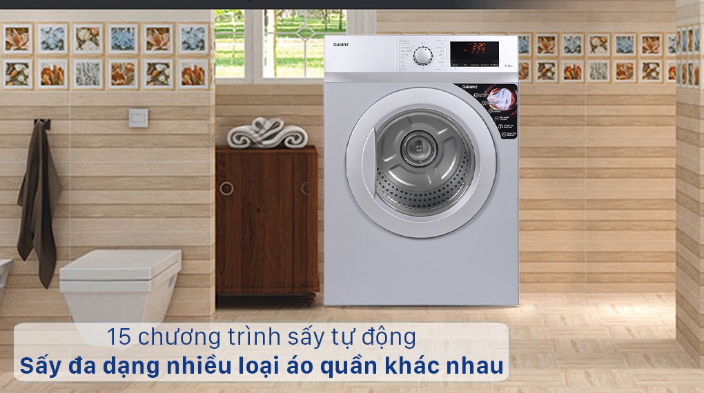 Với 15 chương trình sấy tự động trên máy sấy Galanz 7 Kg DV-70T5C (S) sẽ giúp bạn thoải mái lựa chọn chu trình sấy phù hợp nhiều chất liệu vải khác nhau mà không phải lo sợi vải bị biến dạng hay hư hỏng.