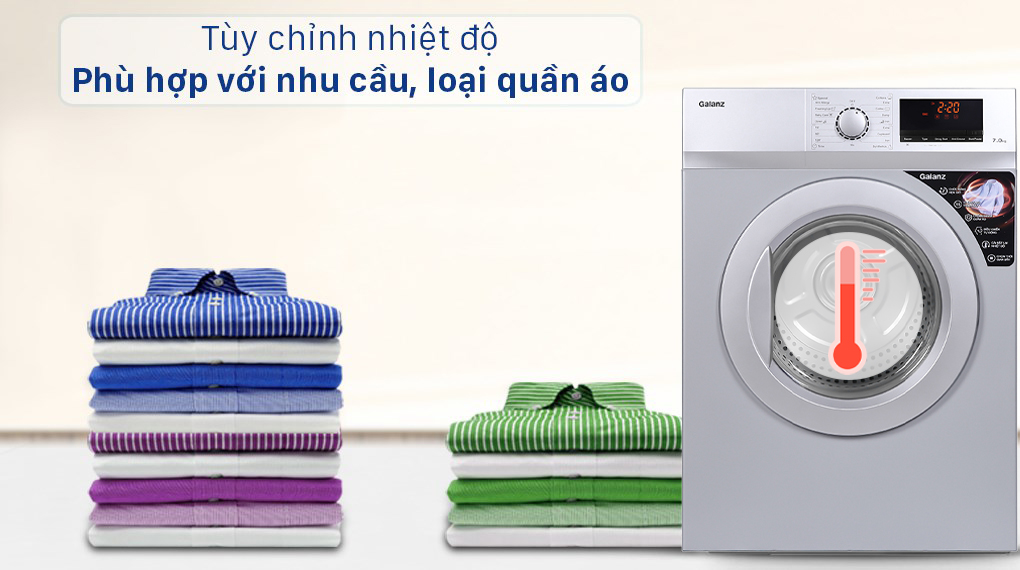 Ngoài các chương trình sấy tự động được thiết lập sẵn thông số thích hợp thì bạn vẫn có thể cài đặt lại nhiệt độ sấy phù hợp với từng loại quần áo, khối lượng đồ khác nhau theo nhu cầu của mình, giúp tối ưu điện năng sử dụng tốt hơn cũng như bảo vệ quần áo.
