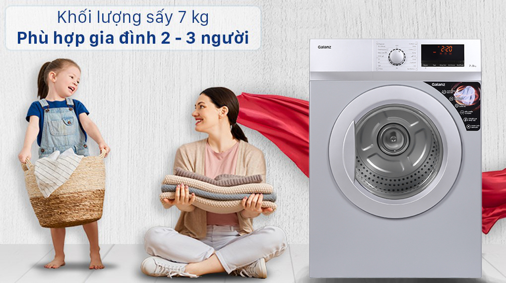 Máy sấy thông hơi Galanz 7 Kg DV-70T5C(S) có khối lượng sấy là 7 kg, phù hợp cho những gia đình có 2 - 3 người. Tuy nhiên nếu gia đình đông người hơn nhưng nhu cầu sấy quần áo mỗi lần không nhiều thì đây vẫn là lựa chọn hợp lý hoặc các cơ sở dịch vụ kinh doanh tiệm giặt ủi, nhà nghỉ,...
