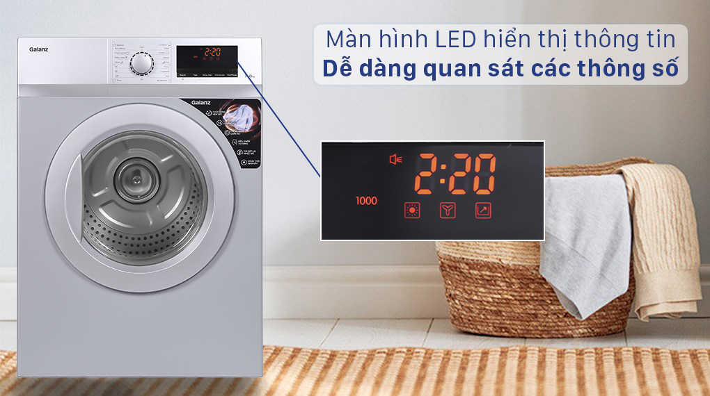 Màn hình LED hiển thị trên máy sấy giúp người dùng quan sát được các thông số rõ ràng, dễ dàng hơn từ xa. Đồng thời cũng thực hiện thao tác nhanh chóng, tiện lợi.