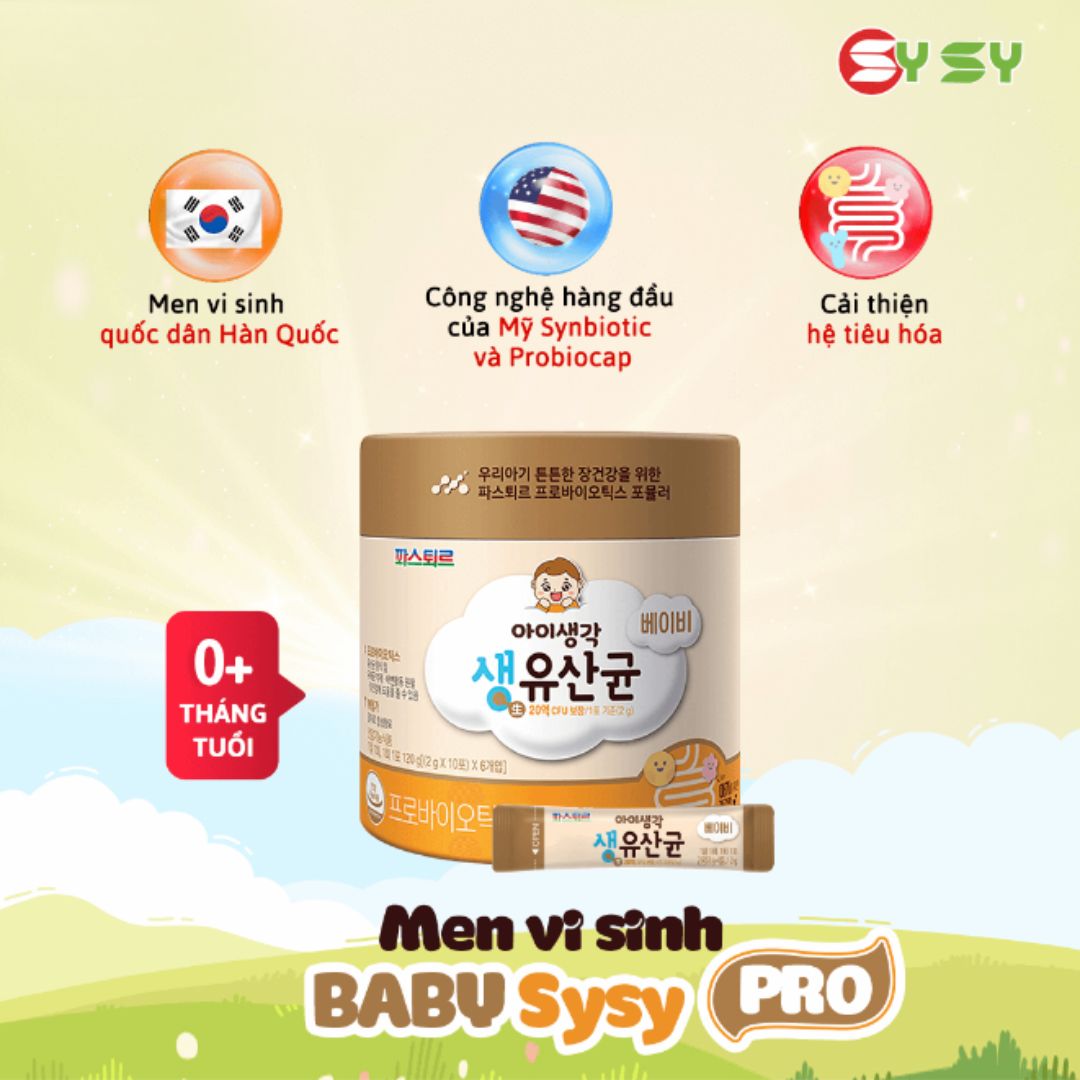 Men vi sinh SYSY Baby Pro dành riêng cho trẻ sơ sinh và trẻ nhỏ dưới 24 tháng tuổi (2 tuổi). Mỗi gói 2 gam sẽ cung cấp cho bé khoảng 15,1 tỷ lợi khuẩn, đảm bảo duy trì 2 tỷ lợi khuẩn sống trong ruột từ 2 – 3 ngày. Từ đó, giúp bé cân bằng hệ vi sinh đường ruột, hỗ trợ giảm triệu chứng tiêu hóa kém, trẻ bị tiêu chảy, táo bón, chướng bụng, khó tiêu.