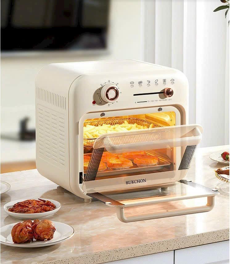 Với thiết kế hiện đại trẻ trung Nồi chiên không dầu Bukchon phù hợp với mọi gia đình trẻ hiện đại ngày nay, thiết kế nhỏ gọn tối ưu mọi không gian để đâu trong bếp ăn cũng không cảm thấy vướng víu. Nồi chiên không dầu Bukchon ứng dụng trong nhà bếp để làm các món chiên nướng rất hiệu quả và nhanh chóng, đặc biệt có các chế độ chọn theo từng món và từng mức độ nhiệt khác nhau bằng cách gạt thanh rất rễ dàng sử dụng. Nồi Chiên Bukchon rất rễ dàng để vệ sinh với khay lưới và khay inoxđược thiết kế rất rễ sử dụng và vệ sinh . Nồi có dung tích 18L đủ để nướng một con gà to phù hợp mọi hoàn cảnh.