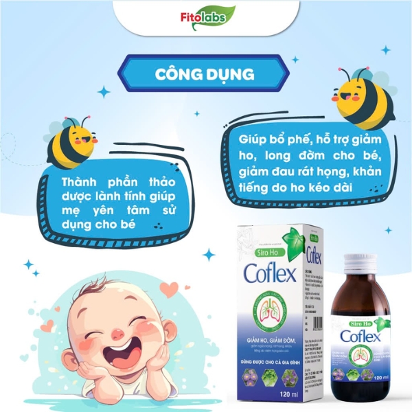 Siro Ho Cho Bé Coflex - Hỗ Trợ Giảm Ho, Tiêu Đờm, Giảm Ngứa Họng, Rát Họng, Khản Tiếng, Lọ 120ml