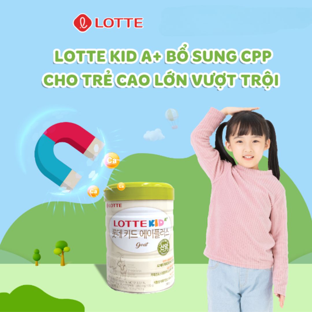 Sữa Lotte Kid A+ dành cho trẻ từ 1 tuổi. Sản phẩm giúp tối ưu chiều cao của trẻ trong giai đoạn vàng.Sữa Lotte Kid A+ không chỉ được ưa chuộng tại Hàn Quốc mà nhiều nước trên thế giới trong đó có Việt Nam.