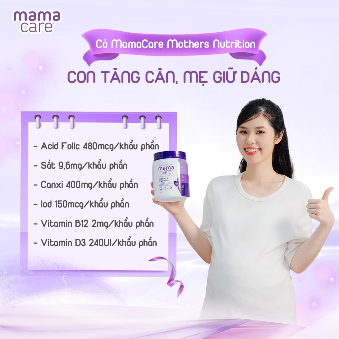 - Sau khi sinh: MamaCare hỗ trợ mẹ kích thích tiết sữa: Hỗ trợ mẹ có nguồn sữa dồi dào và chất lượng để nuôi dưỡng bé; Giúp mẹ phục hồi sức khỏe: Bổ sung vitamin và khoáng chất giúp mẹ nhanh chóng lấy lại sức khỏe sau sinh; Hỗ trợ phát triển trí não và hệ miễn dịch của bé: DHA, Vitamin B12, Iot,… giúp bé phát triển trí não, thị giác và hệ miễn dịch một cách toàn diện.