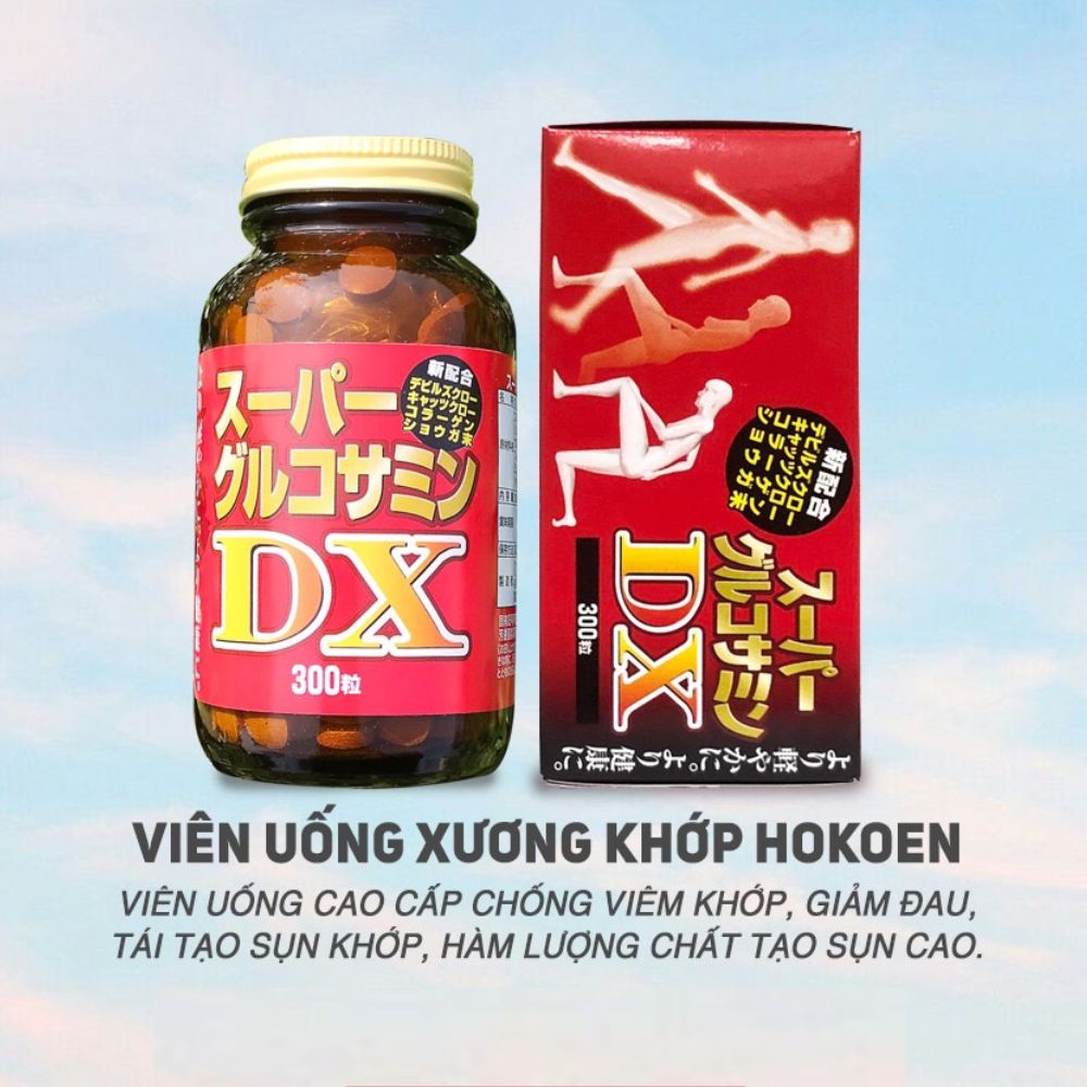 Viên uống hỗ trợ xương khớp Super Glucosamine DX Hokoen là sản phẩm có chứa Chondroitine và MSM (chiết xuất từ sụn vi cá mập), được người dùng ưa chuộng và tin dùng để bảo vệ và tăng cường sức khỏe xương khớp. Sản phẩm cung cấp hàm lượng Glucosamine cần thiết cho cơ thể, được chiết xuất từ lớp vỏ của các loại giáp xác, giúp nuôi dưỡng sụn khớp, chống thoái hóa khớp sớm và giảm những triệu chứng đi kèm hiệu quả.