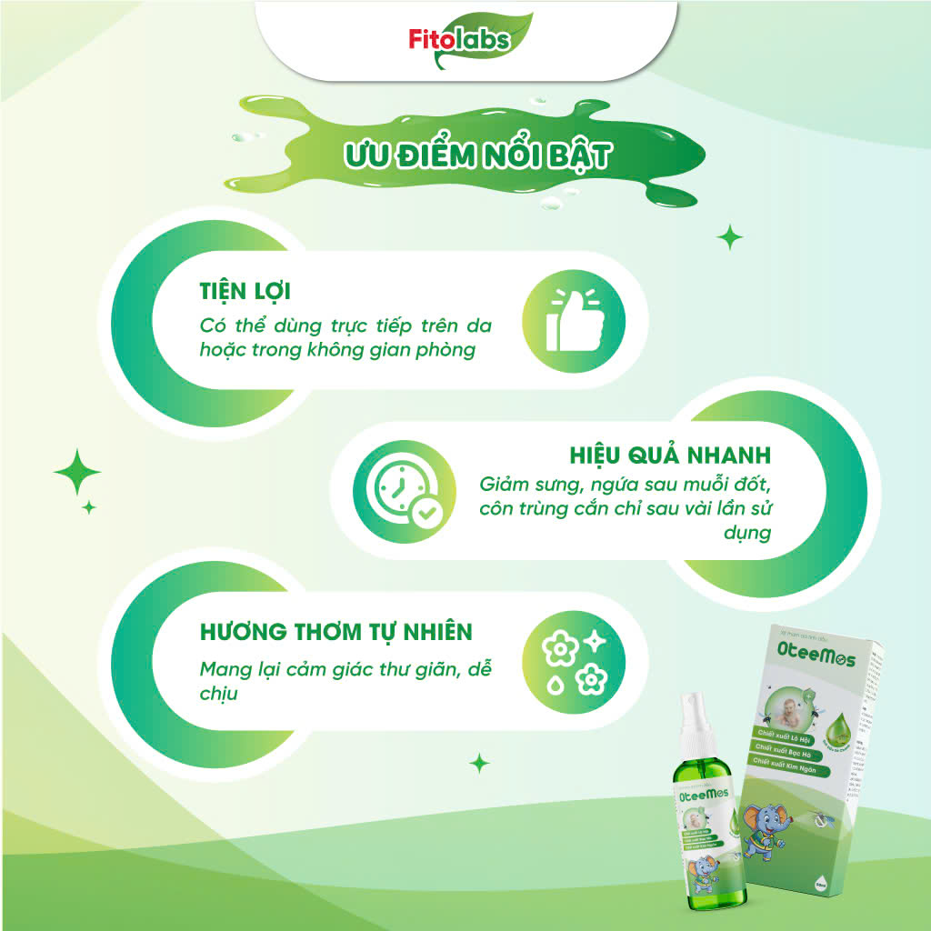- Hiệu quả nhanh: Giảm sưng, ngứa sau, muỗi đốt/côn trùng cắn, chỉ sau vài lần sửdụng.